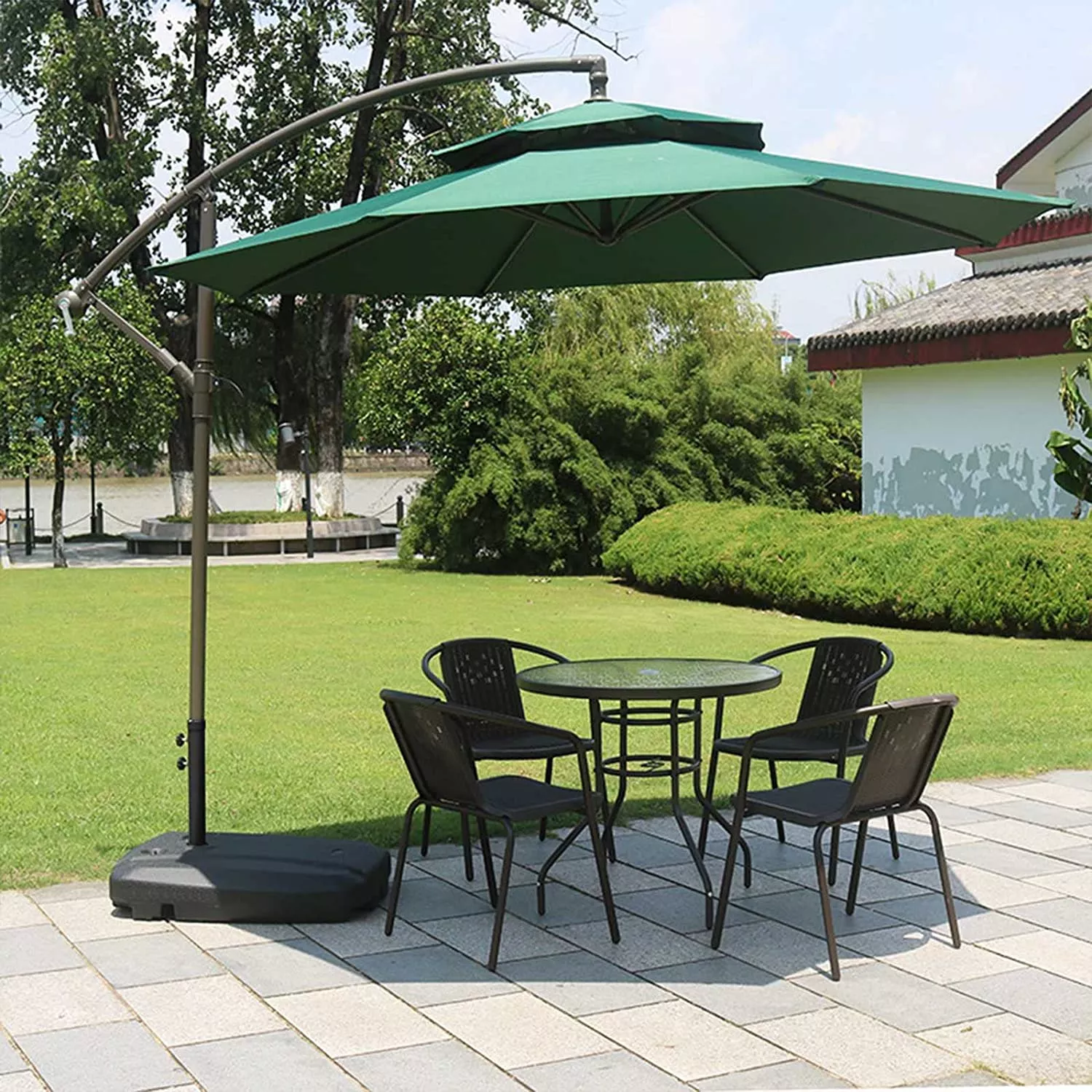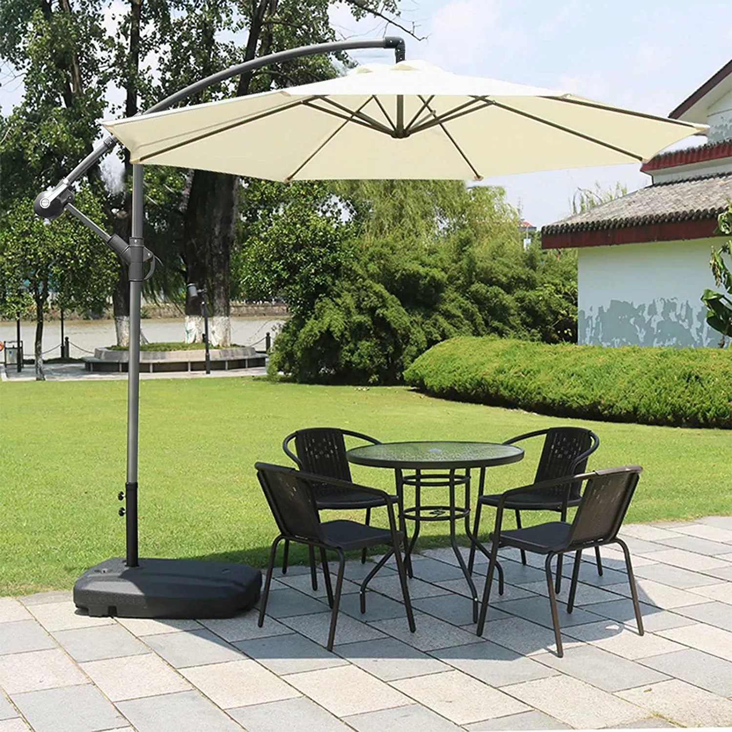 Cantilever Garden Umbrella With Plastic Weight Base