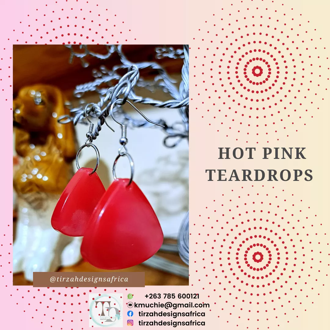 Hot Pink large Resin Tear Drop Earrings