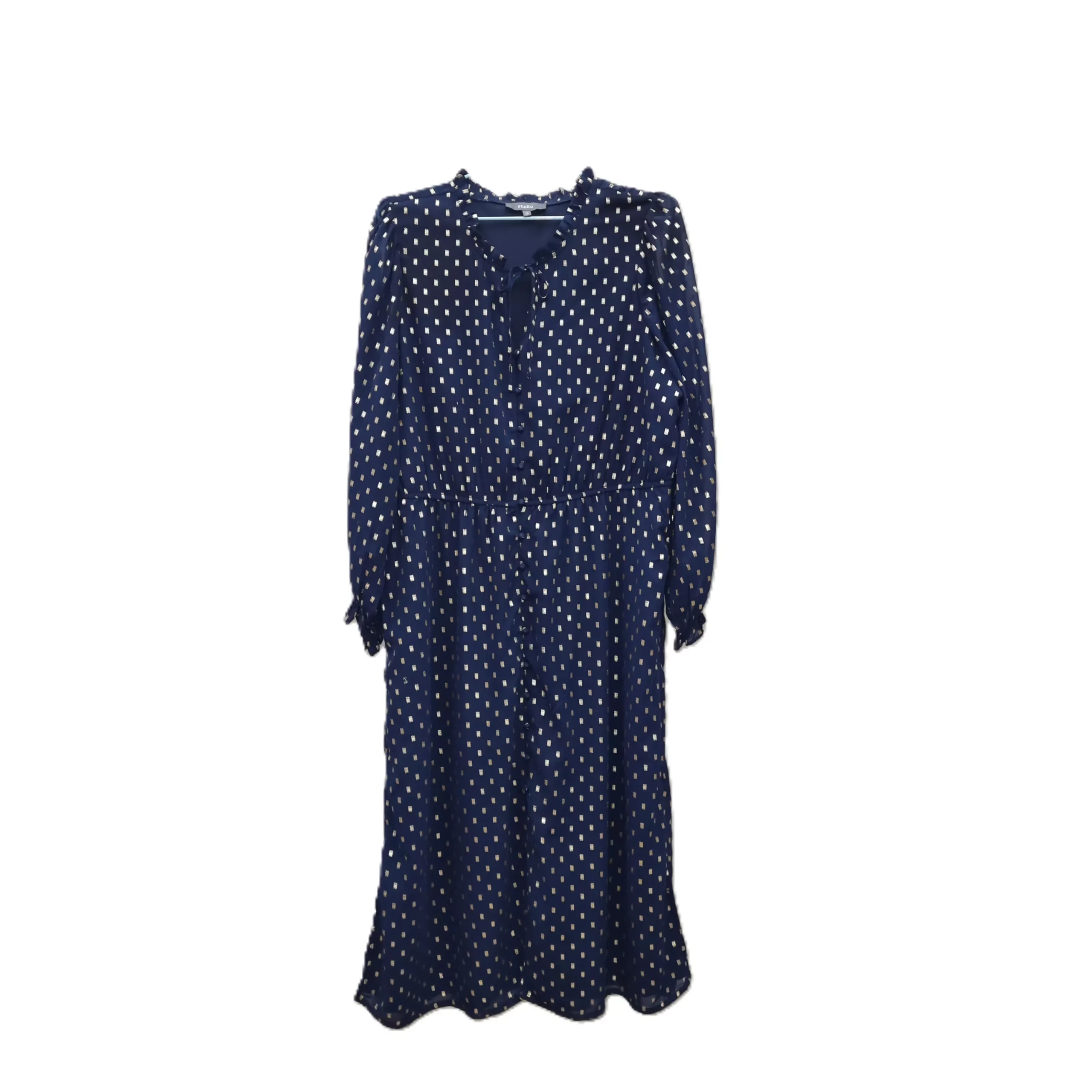 Long-sleeved Potka-dot Print Dress With Tie Neckline