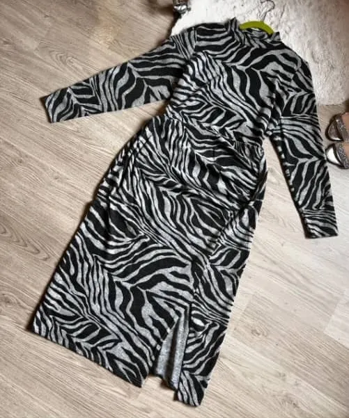 Studio Zebra Print Fleece Dress with Left Leg Vent